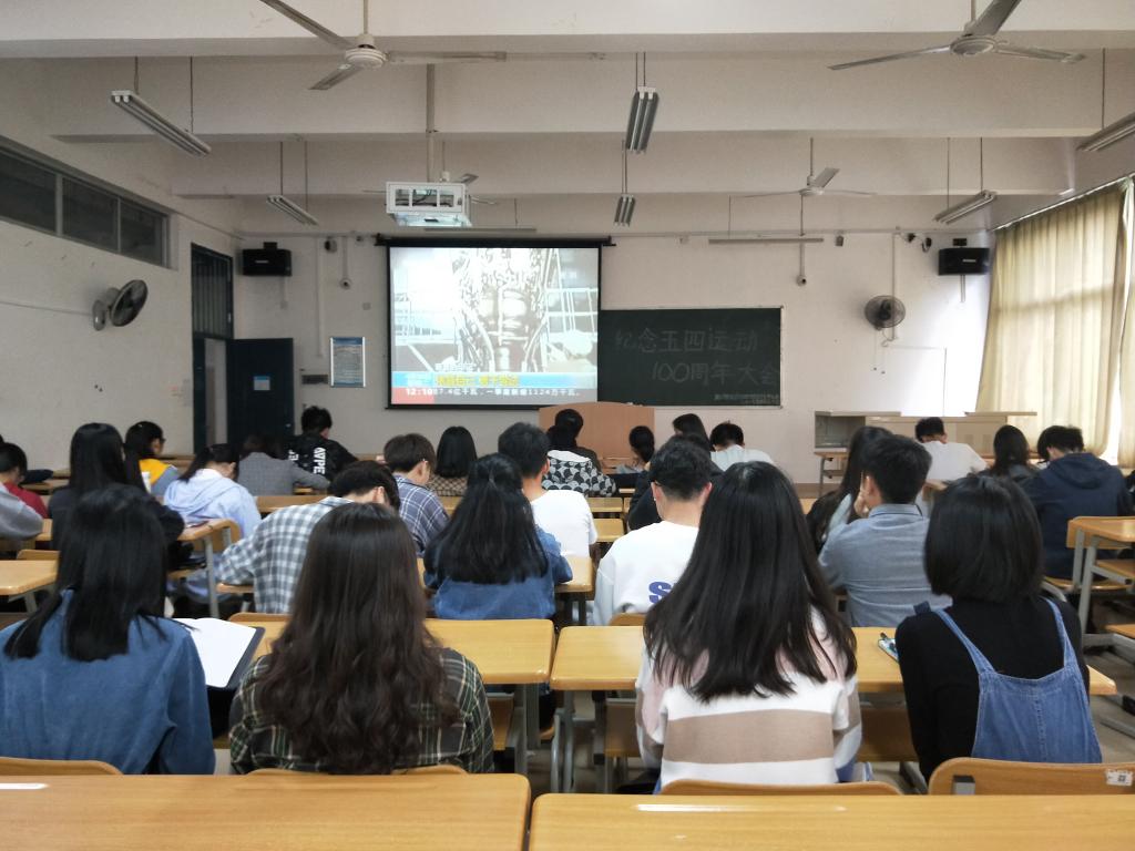 4月30日上午,纪念五四运动100周年大会在北京人民大会堂举行,中共中央总书记、国家主席、中央军委主席习近平出席大会并发表重要讲话。商贸与法律学院团总支组织全体团学干部观看了大会。