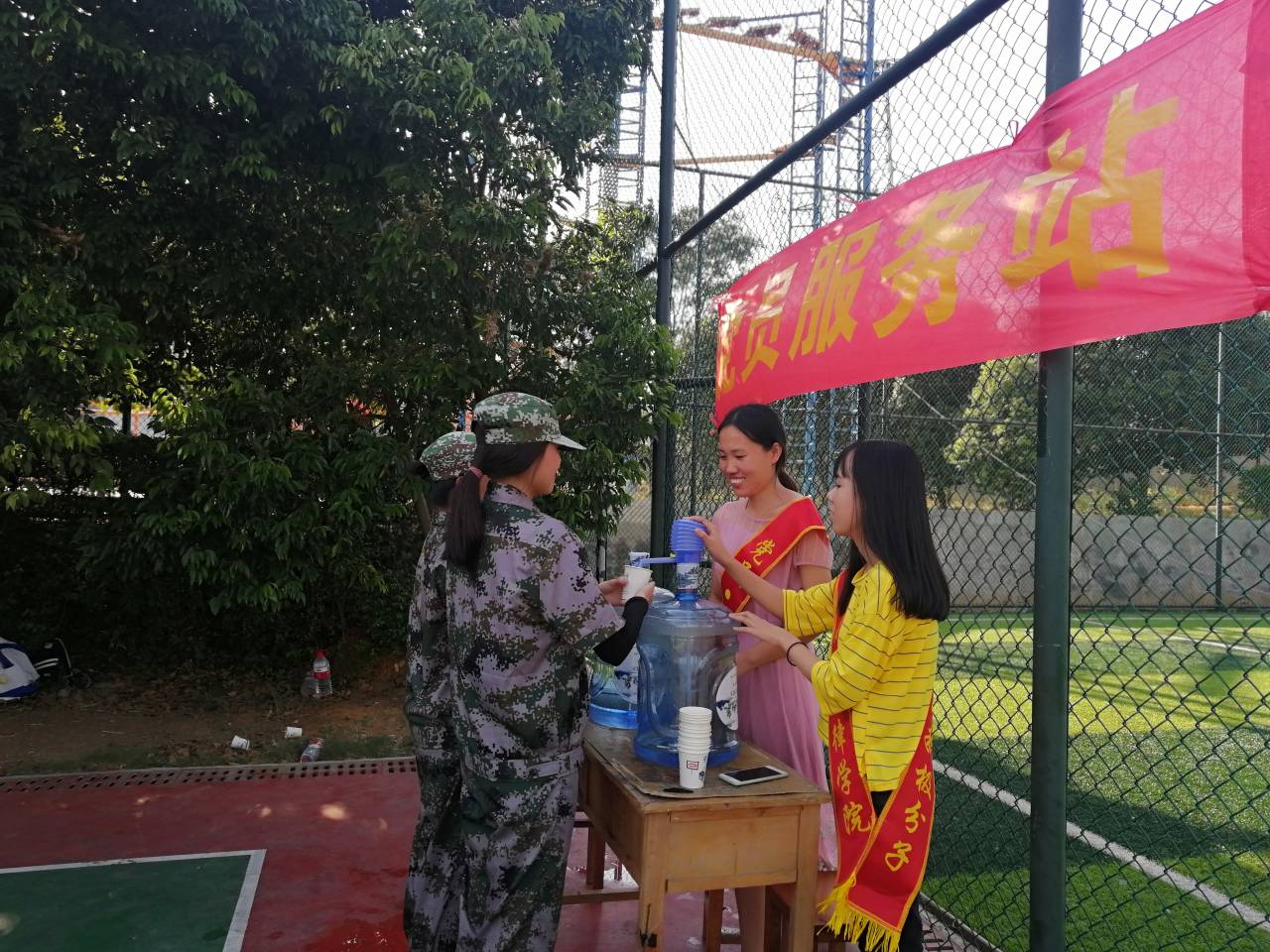我院2019级新生军训正火热进行中。商贸与法律学院于军训现场设立由学生党员、积极分子组成党员服务站,为参训新生开展服务。