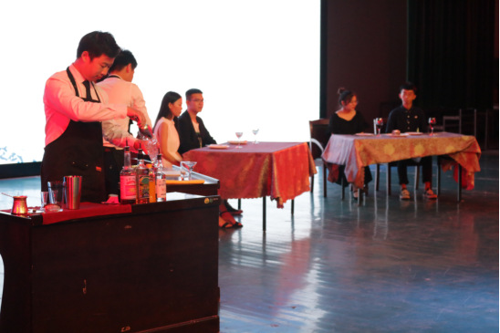在专业介绍、技能展示环节中,法学教研室司丽娟老师向同学们介绍了法学专业的特色、国际经济与贸易专业张欣老师结合专业为同学们做了国贸技能大赛介绍、旅游与酒店管理教研室向同学们展示了导游词、并模拟餐厅点餐场景为大家展示了点单、调酒等专业技能。