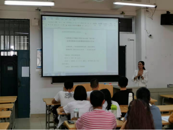9月29日,广西通诚律师事务所黄春芳律师在1204教室举行了“知行”一期《法律实践基本技能》公开课活动。学校副校长、法学专业学科带头人杨庆庆,商贸与法律学院院长林驰和法学专业全体教师参加了活动。