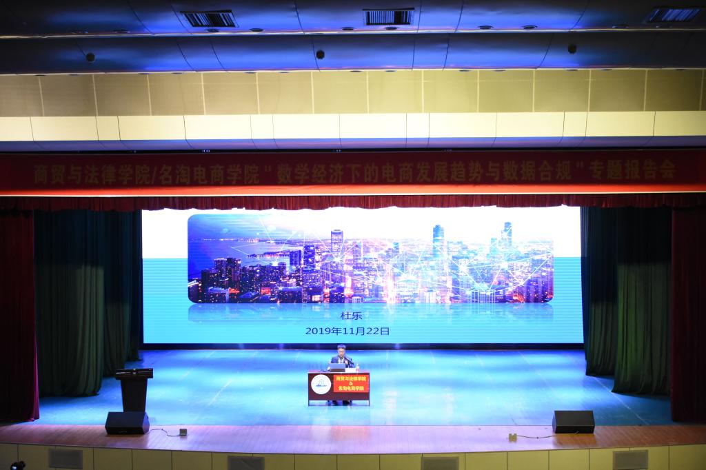 为增强师生对电子商务行业大数据前沿的认知,推进多专业融合发展理念。11月22日下午,我院在弘善讲堂举办“数字经济下的电商发展趋势与数据合规”讲座。商贸与法律学院/名淘电商学院院长林驰、党总支书记陈俊杰、团总支书记许承婷、法学与电商专业教研室全体教师、500余名学生共同聆听了讲座。武汉东湖大数据交易中心股份有限公司总经理杜乐担任主讲嘉宾。