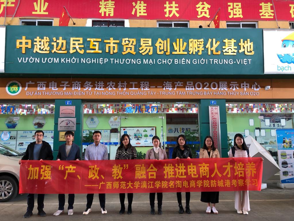 11月28-29日,副校长杨庆庆携商贸与法律学院/名淘电商学院院长林驰、副院长陈建文、电商教研室、法学教研室教师等一行前往防城港商务局、启迪之星(中国·东兴)沿边跨境孵化基地、东兴互市贸易区八找网大数据中心等地考察学习,加强“产、政、教”融合,共商电商人才培养模式。