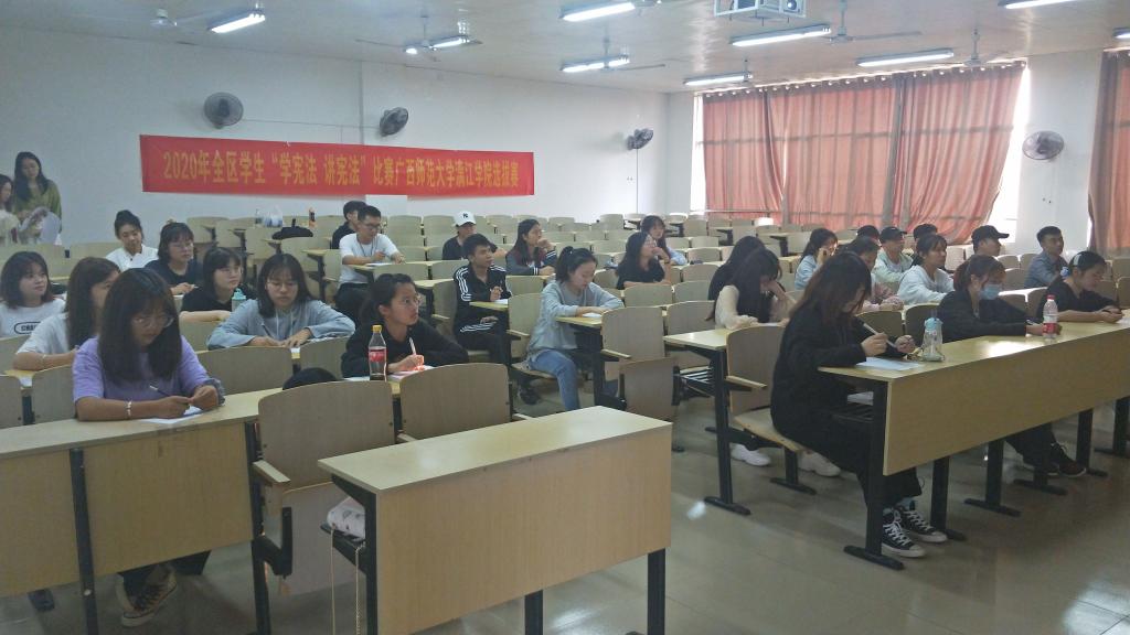 为在大学生中进一步普及宪法知识、弘扬宪法精神、树立宪法权威,10月10-12日,校团委联合商贸与法律学院开展了全国学生“学宪法 讲宪法”演讲比赛、知识竞赛广西师范大学漓江学院校赛。本次比赛面向漓江学院全体学生,通过线上报名后参赛选手们进行现场演讲或作答。