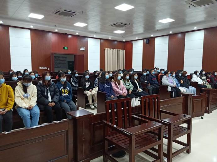 商贸与法律学院为加快改革法学教学模式, 强化法学实践教学环节 , 创新法学教学方式, 由《民事诉讼法》任课教师江仿老师带队组织2019级法学专业近100名学生分别于11月23日、30日赴雁山区人民法院开展法院庭审旁听实践教学活动。