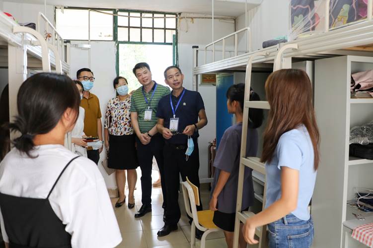 9月14日下午,学校校长杨树喆来到商贸与法律学院新生宿舍慰问看望新生,商贸与法律学院院长林驰、党总支书记陈俊杰、党总支副书记刘雪以及全体新生辅导员随行看望。