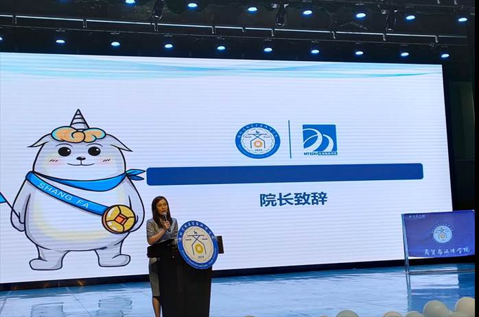 电子商务、国际经济与贸易专业学长学姐运用“直播带货”的方式展现专业魅力。新生代表黄婷婷同学从学习专业、能力培养、奋斗目标三方面给与同学们美好的祝愿希望同学们都能在大学校园实现梦想。
