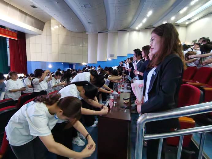 新生拜师礼显得庄严而隆重,一个简单的拜师礼,包含了同学们对老师的尊重与敬爱。