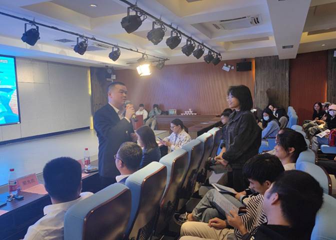 宣讲会开始,由许承婷致辞。许承婷向在场的嘉宾及同学介绍了桂林学院、商贸与法律学院与正大集团,希望我院与正大集团(广西区)的校企合作持续深化,共谋校企协同育人新发展、新方向。接着,由正大有限公司销售经理助理梁光治向同学们详细介绍了正大集团的业务范围、发展历程、产业布局、发展规划、人才培养体系、员工福利等方面。桂林正大有限公司销售代表苏东宝也向同学们分享了自己的正大之旅,鼓励同学们用于尝试,成就更好的自己。另外,桂林正大有限公司总经理张波上台进行分享。在最后的互动环节中,同学们热情不断,张经理耐心的一一为同学们进行了解答。