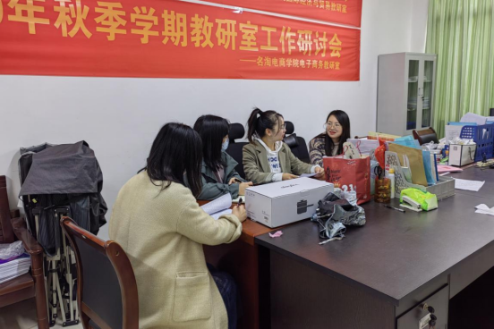 本次研讨交流的重点在于如何利用电商专业优势,优化设计相应环节,结合学生参赛感受,实现对原有电商专业特色活动——特色产品新媒体营销大赛、新生创意短视频活动的优化改进,更有效提升学生电商实战技能。接着,四位老师对新办的电商设计作品大赛的活动评分体系设计展开研讨,通过深入交流,最终形成系列实训活动方案雏形,取得实质性成果。整个研讨会,气氛热烈,为本学期“名淘杯”系列电商实践活动的顺利开展打下坚实基础。