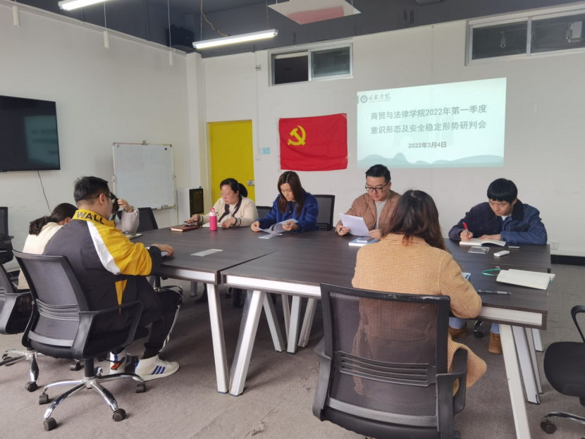 3月4日下午,商贸与法律学院召开今年第一季度意识形态与安全稳定工作布置会,会议由党总支书记陈俊杰主持,全体领导班子成员及行政教辅人员参加了此次会议。