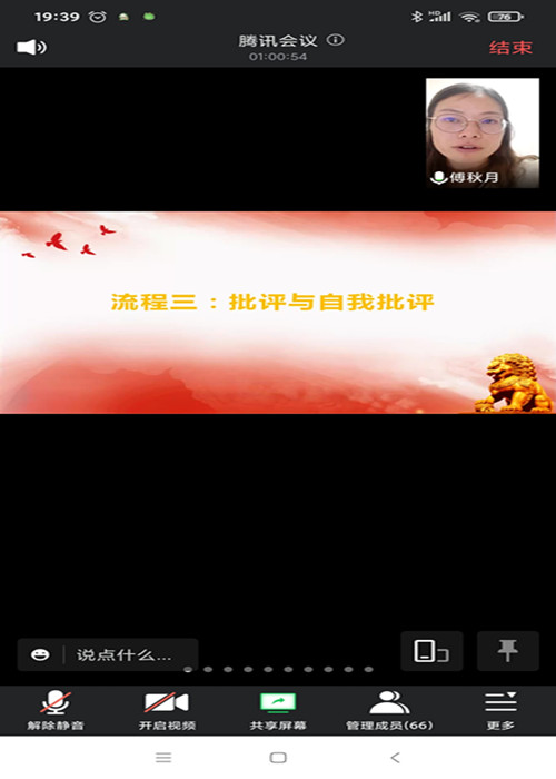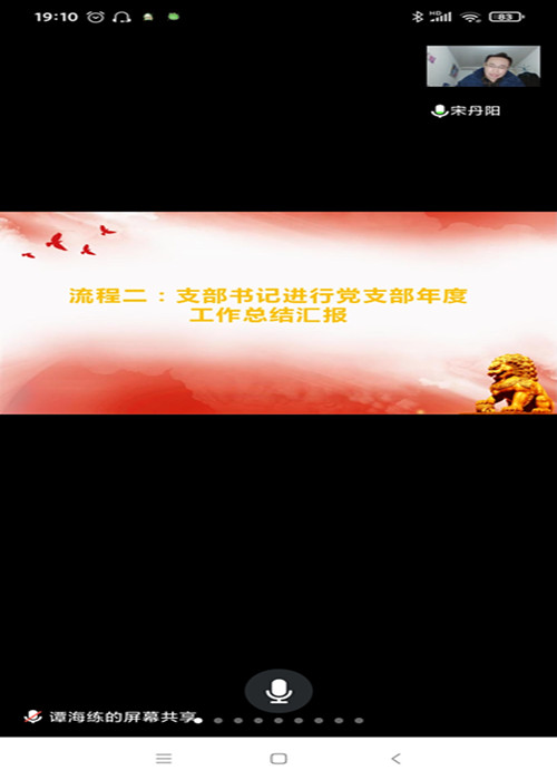 首先,陈书记对会议进行指导讲话。陈书记要求各党员在本次会议上能根据“四个对照”要求,查找自身存在的问题,同时勇于对其他党员提出批评,起到出出汗、红红脸的效果。另外,希望学生党员继续加强理论学习,加强党性修养,提升个人政治素养。之后,由学生党支部书记宋丹阳老师向大会报告了支部2021年度工作总结,查摆问题,提出改进措施和来年的工作展望。批评与自我批评阶段,由支部书记带头,按照“四个对照”要求,结合自身实际情况,各党员逐一开展自我批评,分析问题产生的原因,提出改正措施。其他党员本着实事求是、开诚布公、为同学负责的原则,相互提出中肯的意见和建议。之后,各党员通过线上民主投票的方式完成了党员民主测评。