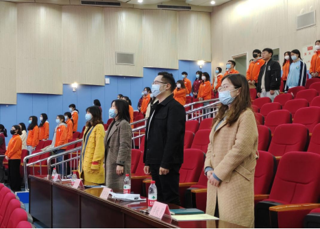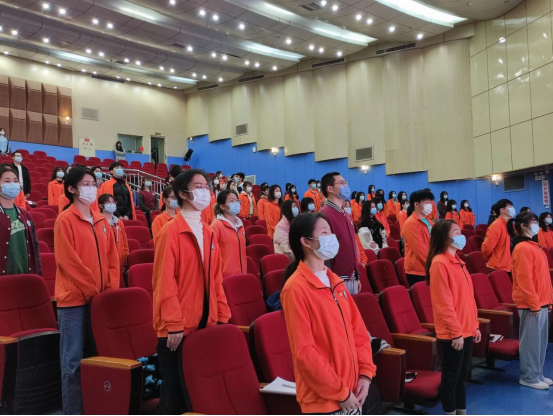 会议伊始,全体师生起立,共同歌唱共青团团歌,时刻铭记自己的使命。