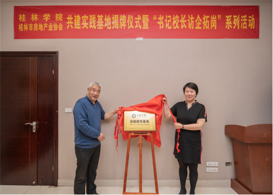 座谈交流结束后,杨庆庆副校长与桂林市房地产业协会、桂林市物业服务行业协会分别举行校企合作签约仪式及校外实践基地揭牌仪式。