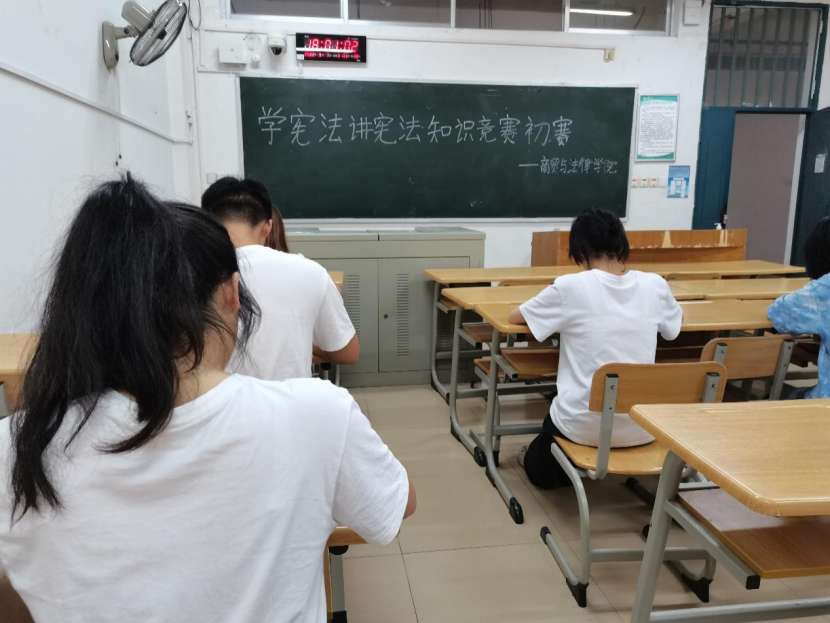 本次初赛以笔试方式进行,主要考察选手对于宪法和相关法治史等方面的知识的掌握、理解与运用能力,参赛选手积极备赛,生动展现了商法学子对于法律知识学习的热情与重视。参赛选手从容作答,严格遵守考场纪律,监考员认真负责,考试有序进行。考生在规定时间内作答完毕后交卷离场。