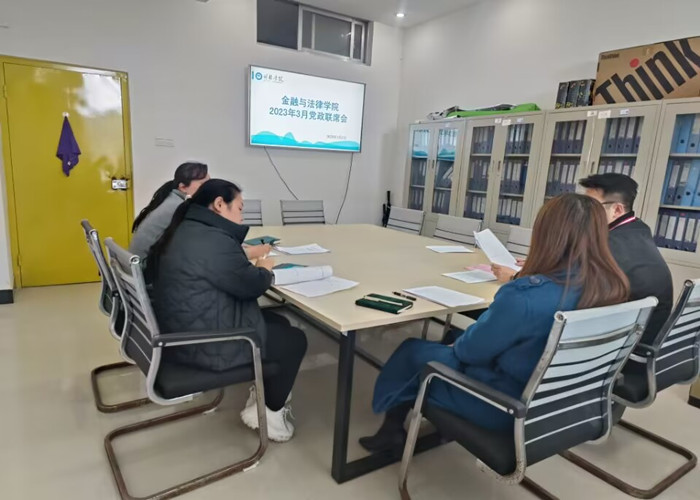 3月2日,金融与法律学院领导班子在3203办公室召开我院2023年3月党政联席会及第一季度意识形态和安全形势分析研判工作会,会议由党总支书记陈俊杰主持。