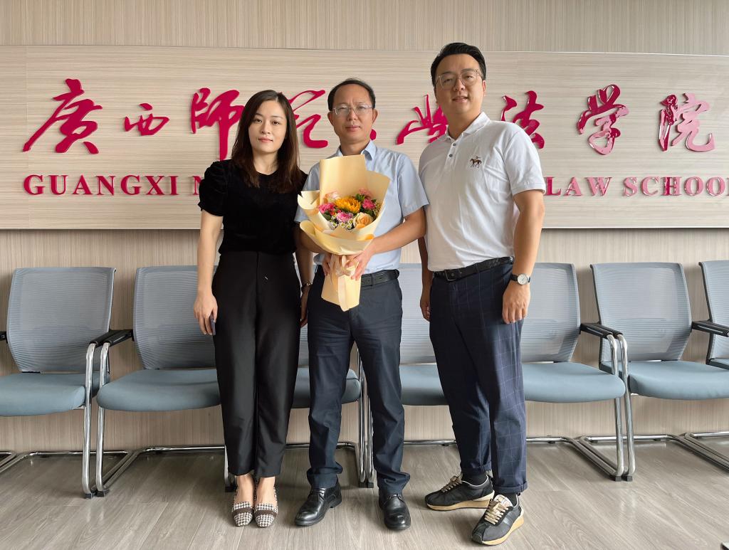 图:班子成员与法学专业首席教授陈宗波老师合影