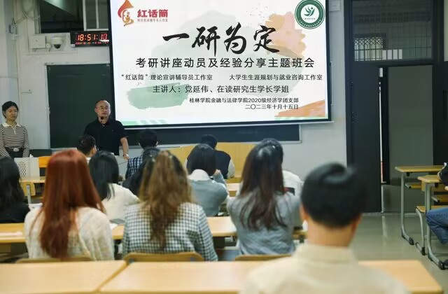 在考研最后的冲刺阶段,为进一步提高考研学子的热情,掌握相关的考研技巧,10月15日晚,金融与法律学院2020级经济学团支部开展考研经验分享讲座,本次讲座有金融与法律学院学生社区党支部书记、团总支副书记,思想政治辅导员党延伟老师,2019级金融学考研上岸的陈颖佳学长、张琳诺学姐及2020级经济学专业全体同学参与。