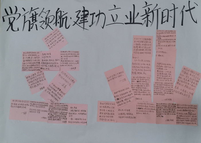 随后,与会成员就观看的视频将自己的感悟用便利贴记录下来并在现场进行分享。在交流分享中,入党积极分子张莉蕻结合自己的专业谈到:作为一名法学学生,在今后的生活中难免会遇到各类案件,面对更加错中复杂的利益关系,拥有独立的思维判断是成功处理案件的关键。预备党员赵欣欣提到“当代中国青年是与新时代同向同行、共同前进的一代,生逢盛世,肩负重任”她表示自己在今后的学习生活中,将会依据自己的国贸专业特长以及兴趣爱好从推广国内旅游、融入国际旅游合作、关注社会公益三方面为新时代贡献自己的青春力量。