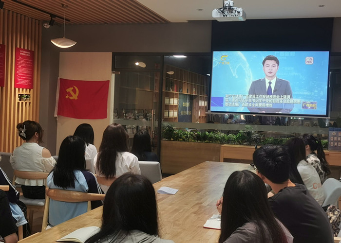 活动初始,学生党支部书记谭海练领学自治区党委书记刘宁在清廉广西建设工作现场推进会上的讲话内容,并强调各学生党员应深入贯彻学习习近平总书记关于党的自我革命战略思想,牢牢把握“学思想、强党性、重实践、建新功”的总体要求,为建设清廉广西、清廉学校、清廉学院做出自己应有的努力和奉献。