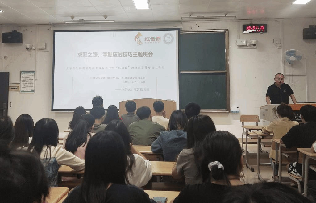 求职是每个大学生职业生涯中不可避免的阶段,求职的成败事关人生前途与职业发展。所以,为了同学们应掌握足够的求职技能,以适应当前日益严峻的就业环境,走好迈向职场的第一步。11月5日晚,2021级金融学类专业在1407教室开展“求职之路,掌握应试技巧”主题班会。本次主题班会由金融与法律学院学生社区党支部书记、团总支副书记、思想政治专业辅导员党延伟老师主讲。