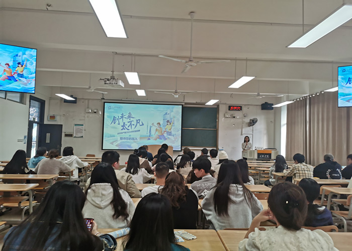 在宣讲会上,封媛老师从自身十年的金融从业经历谈起分享了自己的工作心得体会,激励同学们工作应积极勤勉,时刻保持学习热情。接着,封媛老师介绍了太平洋产险广西分公司的发展历程和企业文化,重点介绍了太保的人才体系、晋升空间、薪资待遇、工作板块以及2024年广西全辖的用人需求。尤其令人感动的是,公司还精心制作了一段视频,视频中2022届学长分享了在太保工作的收获与成长,并鼓励和邀请2024届学弟学妹加盟太保。