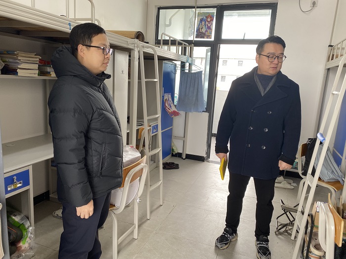 会后,与会全体人员深入学生宿舍,开展学生宿舍安全隐患工作排查。