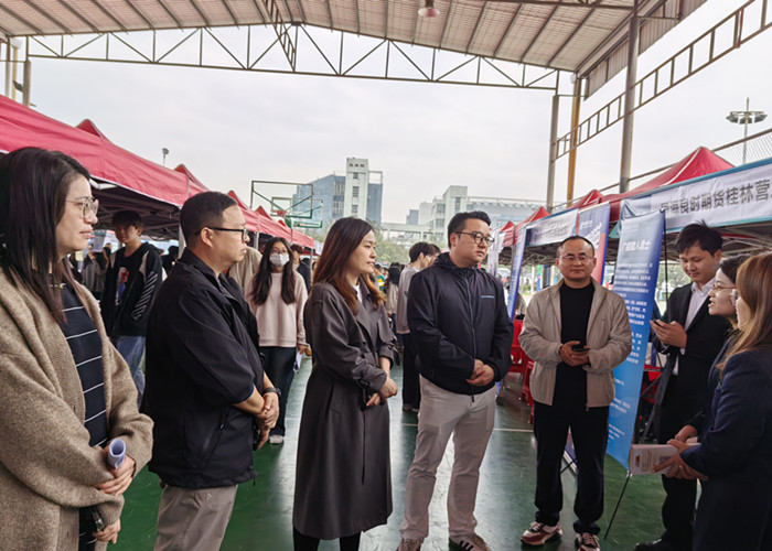 强化供需对接,深化渠道促就业。3月27日,学院联合管理工程学院在风雨球场联合举办2024届毕业生专场双选会。此次双选会汇聚了浙江名淘控股杭州名淘教育科技有限公司、广西彰泰物业服务集团有限公司、招商证券股份有限公司、中国光大银行股份有限公司桂林分行等40余家单位,涵盖了金融经济、财产保险、电商、法律等行业,提供了众多岗位,毕业生近一千人参会。