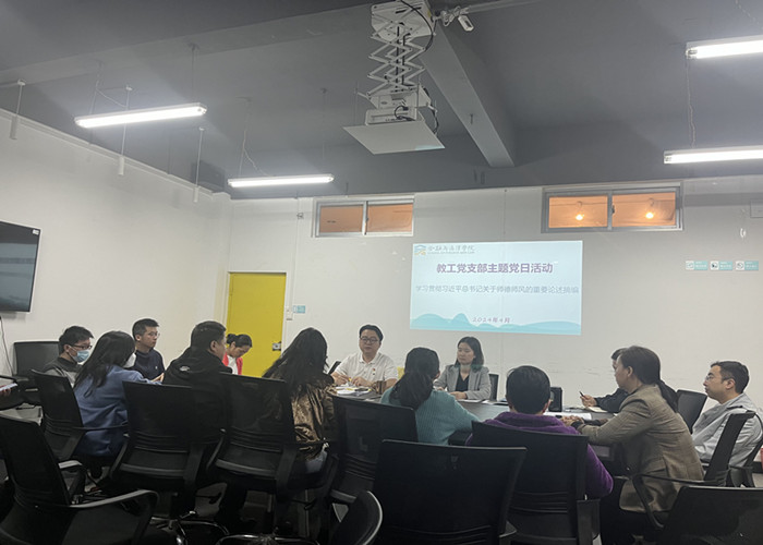 4月10日下午,金融与法律学院教工党支部在3207教室成功开展以“不忘初心,规范从师”为主题的党日活动。本次活动旨在深入学习贯彻习近平总书记关于师德师风的重要论述摘编,提升党员教师的思想政治素质,凝心聚力跟党走,进一步推动学院的教育事业健康发展。