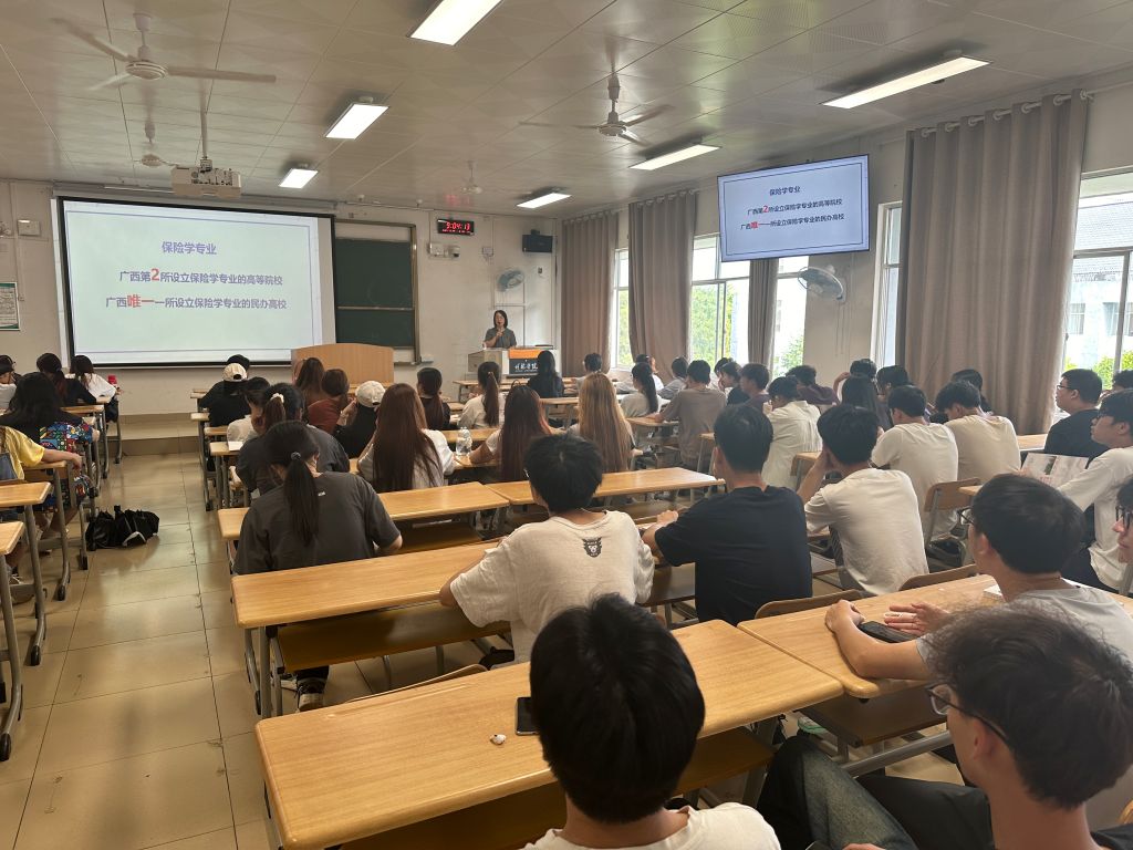 5月24日,金融与法律学院2022级金融学类学生专业分流宣讲会在至善楼1406、1407顺利召开。宣讲会由胡乐天主持,谭艳斌、蓝明、韦翔、2022级辅导员罗雪出席大会,2022级金融学类187名同学参加了本次宣讲会。
