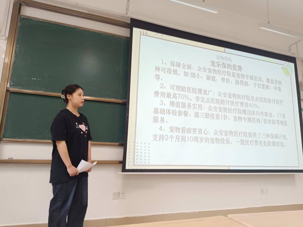 活动中,每个小组选择了感兴趣的保险产品作为研究对象。同学们严谨地分析了保险产品的核心要素,包括产品类型、保障范围、理赔流程等,并结合市场数据与案例,客观阐述了产品的市场定位与竞争力。在展示环节,学生们轮流上台,以清晰、条理化的语言对各自的保险产品进行了全面阐述。