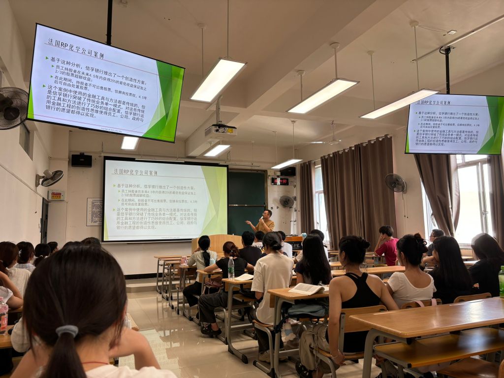 本次课的主题是《金融工程学》的第一章金融工程概论。课堂上,韦翔老师不仅绘声绘色地讲授金融衍生品的内涵、种类、作用以及具体案例,也积极地和台下学生进行课堂互动。开学上课的第一天,同学们表现活跃积极,对于韦翔老师的授课内容展现了极大的兴趣,并热情地回应老师的提问。