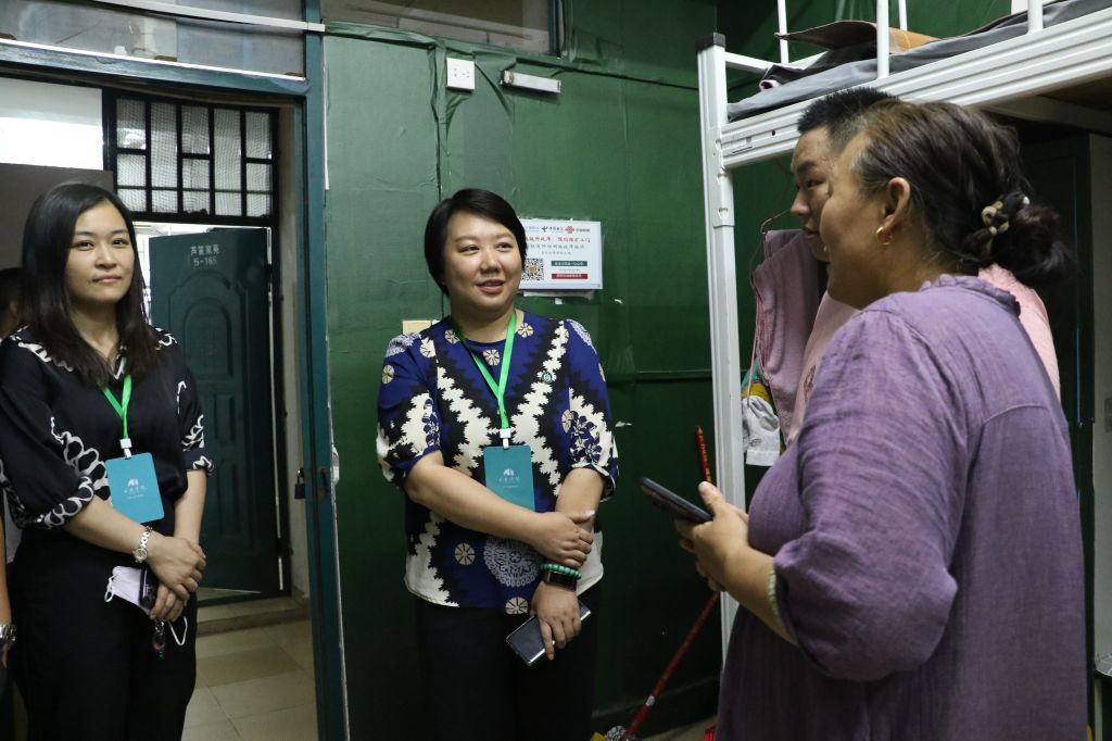 杨庆庆副校长一行来到了西二宿舍楼。每进一间宿舍,他们都仔细查看宿舍的通风、采光情况,还细心地检查了床铺的稳固性和安全设施,力求为新生们营造一个既安全又舒适的居住环境。走访中,杨庆庆副校长还关注每位新生的个人背景,从生源地到饮食习惯、生活习惯,无一不细致询问。杨庆庆副校长一行还与家长们进行了深入而真挚的交流,耐心倾听每一位家长的关切与疑惑,以专业与真诚的态度一一解答,并共同探讨了孩子的学业规划、学习支持策略,还就孩子的心理健康、成长挑战等话题进行了开放而包容的讨论,加深了家校之间的沟通与理解,为孩子们的成长注入了更多的智慧与力量。