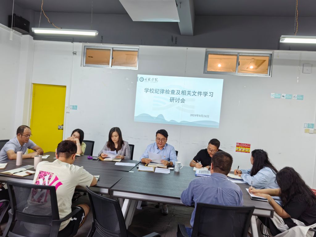 接着,书记带领与会人员学习了《桂林学院2024年纪检监察工作要点》《进一步严明中秋节、国庆节有关纪律要求的通知》《 关于组织开展全体党员、高中层管理干部违规饮酒整治工作的通知》等文件。他指出,纪律是学院管理的基石,是确保各项工作顺利开展的重要保障,各工作口、各教研室一定要按照学校相关文件的规定,严守纪律要求。