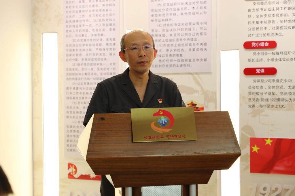 活动最后,苏革进行总结发言。他首先对活动的成功举办给予了高度评价,肯定了党员代表们的出色表现。他提到,本次活动的成功举办,不仅点燃了在场党员内心炽热的爱国情怀,更是以一种独特而庄重的方式,向新中国成立75周年献上了最诚挚的敬意与祝福。同时,他结合自己的阅读经验和工作实践,向在场党员推荐书籍,希望广大党员能够继续深入学习贯彻习近平总书记重要讲话精神,发扬革命精神,勇担时代使命。他表示,雁山区人民法院将继续深化与金融与法律学院、人文学院党建共建合作,不断创新活动形式和内容,共同为培养更多具有爱国情怀和社会责任感的优秀人才贡献力量。
