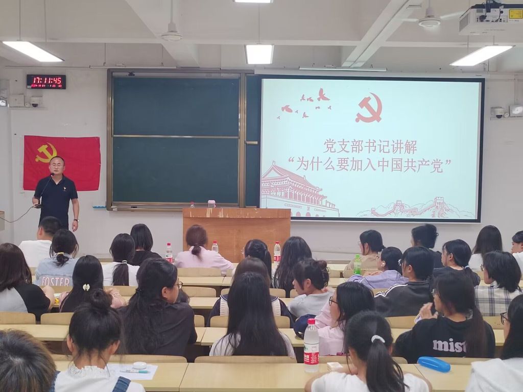 最后,党支部书记带来主题为“为什么要加入中国共产党”的讲解。支部书记从中国共产党的发展历程、党的性质和宗旨、党员的权利和义务等方面,深入阐述了加入中国共产党的重要意义。同时,他以亲身经历为例,讲述了自己为何要加入中国共产党,并在加入中国共产党后是如何在党的光辉照耀下成长,如何在工作生活中坚守初心、践行使命。他指出,作为一名大学生,加入中国共产党不仅是个人政治生涯的重要选择,更是对国家和民族未来发展的一份责任和担当,他的讲解深入浅出,赢得了在场新生的广泛认同。