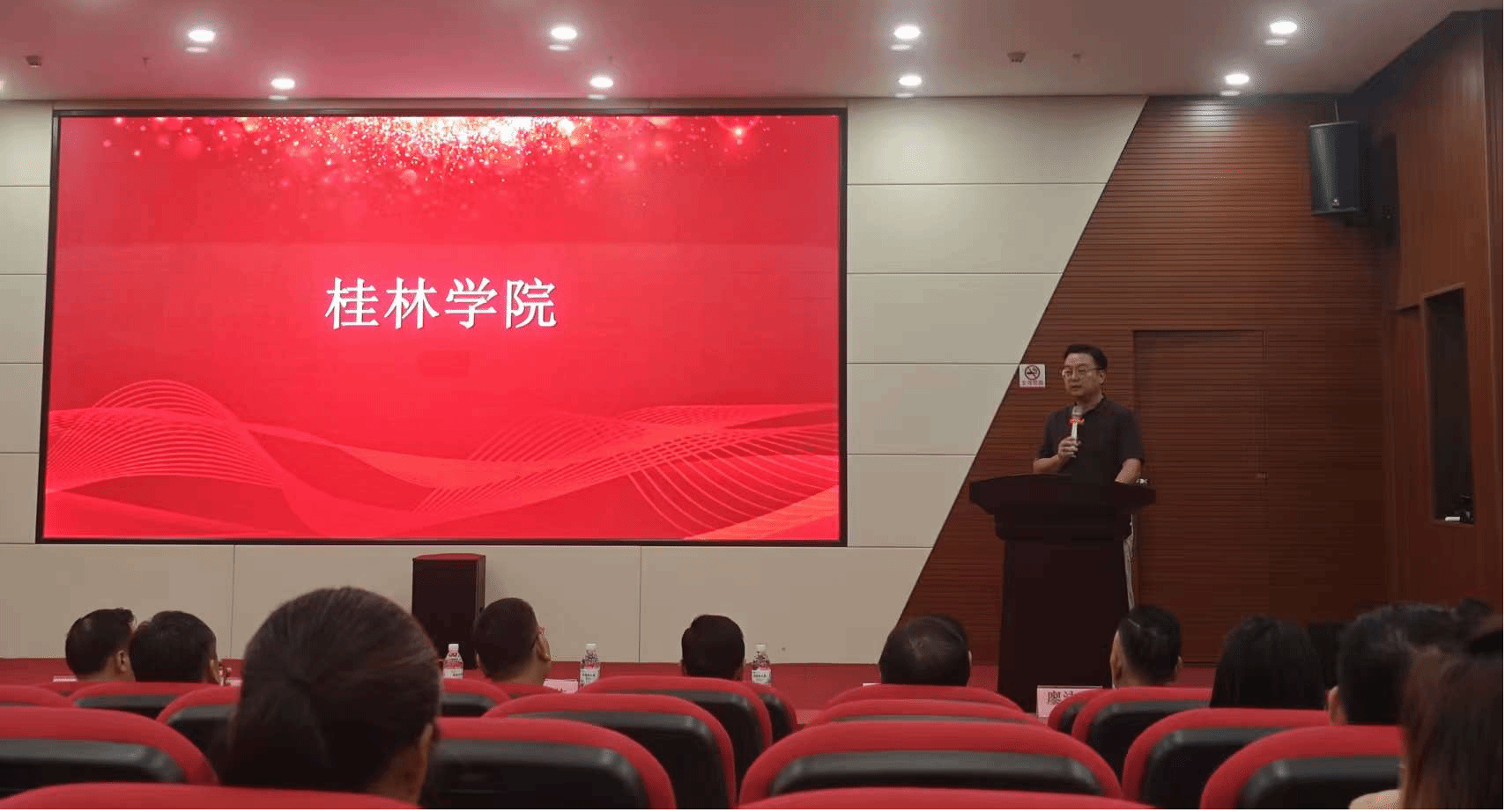 桂林学院金融与法律学院作为副会长单位、唯一高校代表受邀参会,学院党总支书记在会上分享校企合作案例,重点介绍了国际经济与贸易专业与广西齐泰健康产业有限责任公司在校企合作与跨境人才培养方面取得的成果。党总支书记在发言中指出,本次会议不仅是总结贸促工作、共商发展大计的重要平台,更是高校对接行业需求、优化人才培养方案的重要契机。“高校与企业的深度协同,是推动教育链、人才链与产业链有机衔接的关键。”党总支书记强调,参与此次会议有助于高校准确把握外贸行业发展趋势和企业人才需求,为专业建设、课程开发和人才培养提供明确方向。