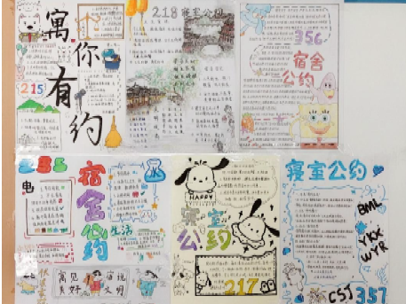 目前,优秀获奖作品已通过学院官网、微信公众号及线下展板同步展示,为全院学生提供寝室建设的参考范例。此次大赛的成功举办,不仅帮助2025级新生快速建立集体意识,更以公约设计为载体,推动形成文明和谐的寝室文化,为新生大学生活奠定坚实基础,进一步强化学生的责任意识与协作能力,助力学生全面成长。