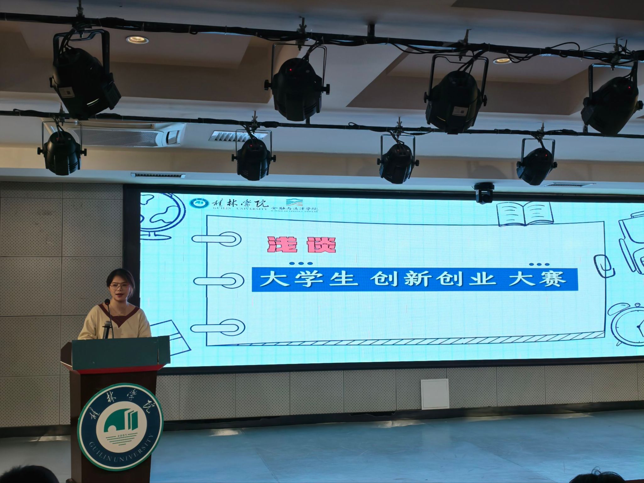 为深化创新创业教育改革,帮助2025级新生准确把握学科竞赛与创新创业赛事的内涵与价值,科学规划成长路径,激发科技创新热情,近日,金融与法律学院在至善讲堂顺利举办创新创业大赛宣讲会。本次活动特邀2023级金融学专业“赛事达人”庞燕秋同学主讲,为全体新生送上“参赛指南”。