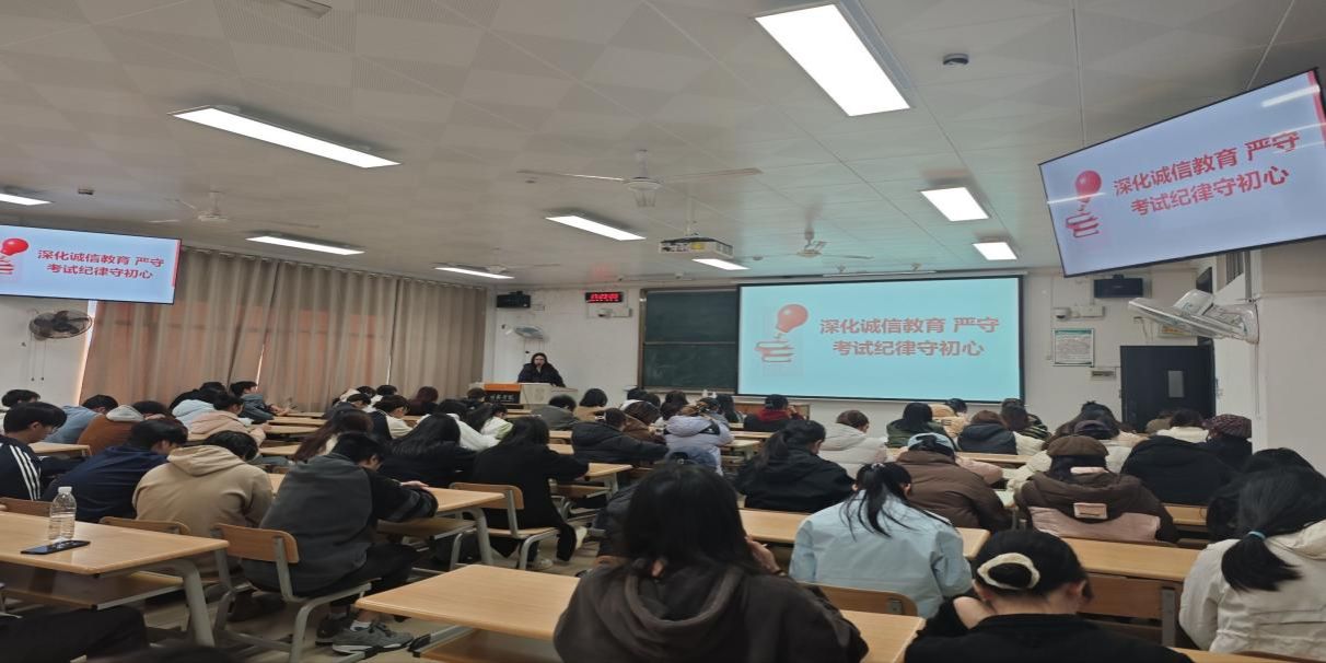 为切实营造公平、公正、诚信的考试氛围,强化学生纪律观念与道德自律意识,金融与法律学院以周日晚例会为启动节点,正式拉开为期一个月的 “诚信考试教育月” 活动序幕。作为教育月的首场核心活动,学院组织各班级同步开展 “深化诚信教育 严守考试纪律” 主题班会,围绕国家教育考试相关规定、学校考试管理要求及典型案例警示教育等关键内容展开,旨在从源头引导学生端正学习态度,牢固树立诚信应考观念,共同筑牢优良学风防线。