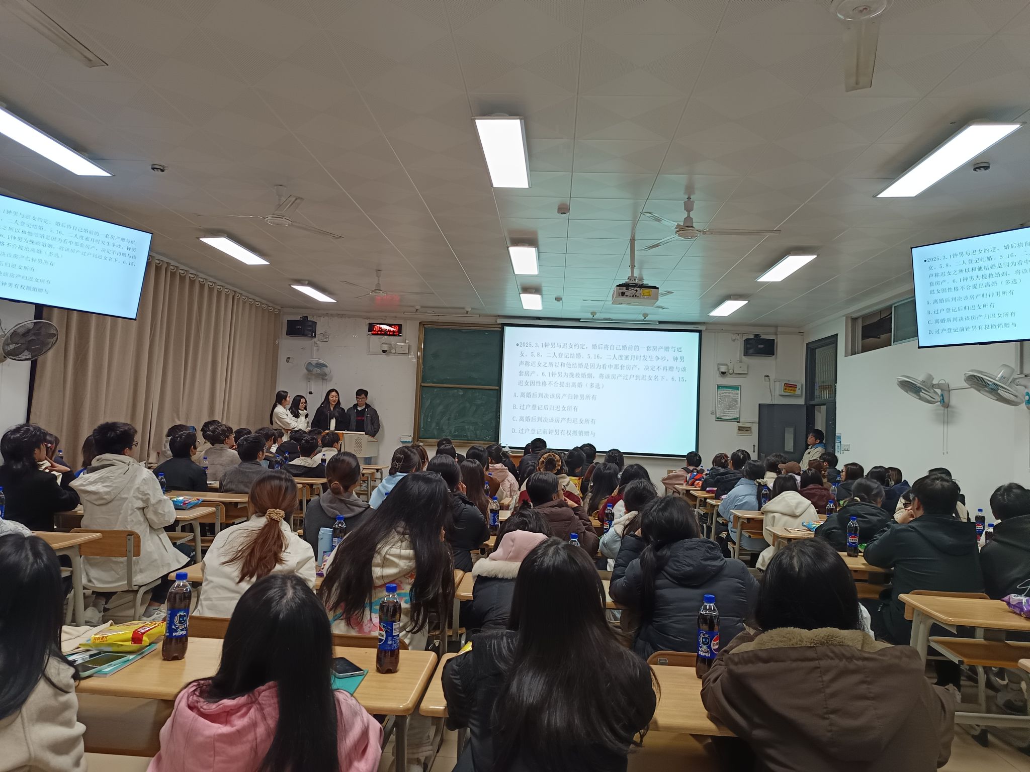 为帮助法学专业学生明确法考备考方向、掌握科学备考方法、激发学习动力,搭建年级间法考学习交流的桥梁,12月14日晚,金融与法律学院组织开展 2025 年国家统一法律职业资格考试经验分享会。分享会邀请学院法学专业2022级通过2025年国家统一法律职业资格考试的学生代表担任分享嘉宾,通过实战经验传递与朋辈引领赋能,助力2023级学子破解备考难题、夯实职业发展根基。