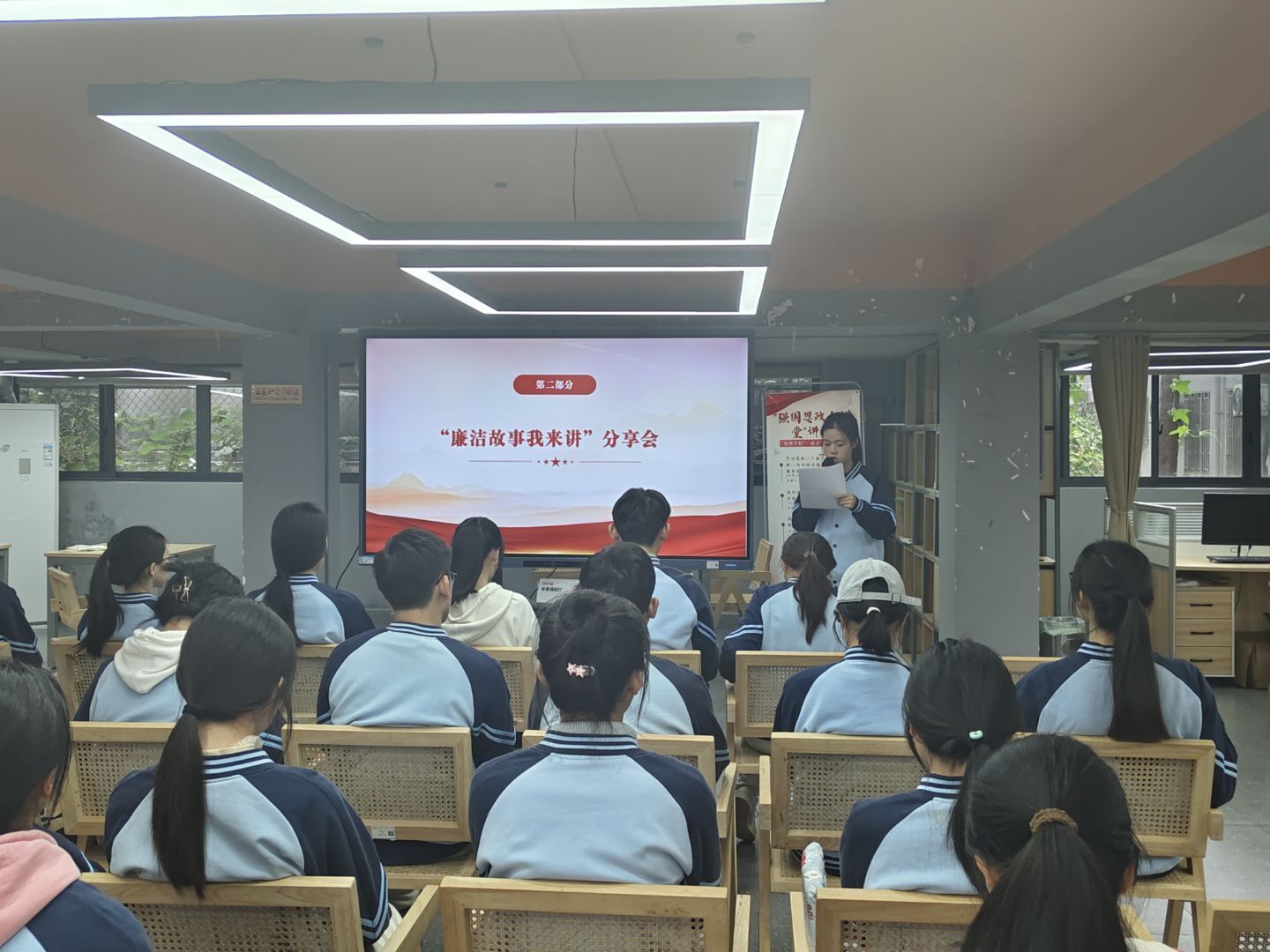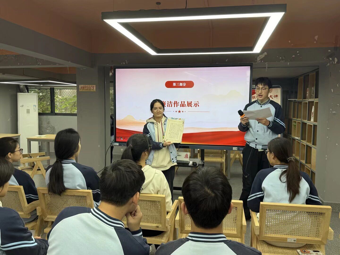 全体与会人员集体观看了廉洁教育视频,接受深刻的思想洗礼,进一步增强了廉洁从业的自觉性和坚定性。之后开展“廉洁故事我来讲”分享会,党员代表依次讲述廉洁小故事,结合个人感悟交流对廉洁自律的理解。这些分享不仅让在场的党员深受触动,更进一步坚定了大家坚守廉洁底线、践行初心使命的决心。此外,党支部在活动前期收集了各团支部上交的廉洁方面的书画作品,并在活动现场展示,生动地体现了同学们对廉洁的理解。