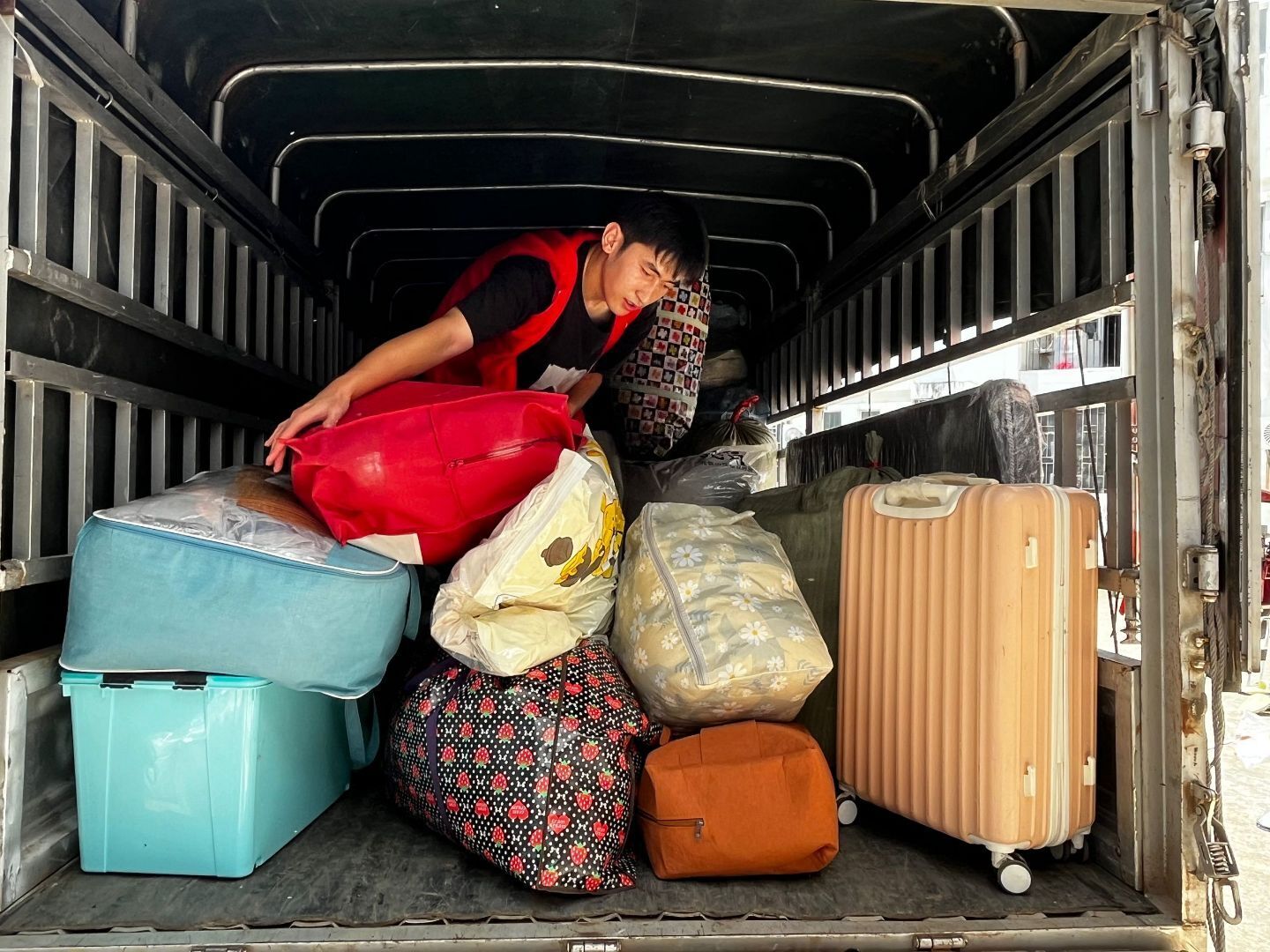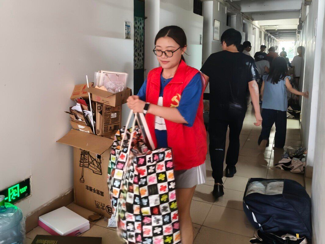 党员志愿者们分工明确,有的独自扛起沉重的编织袋,有的两人一组抬着大件行李,楼道里回荡着他们匆忙而坚定的脚步声。在高温的炙烤下,他们一趟又一趟地往返于新旧宿舍之间,一件件行李在他们手中接力传递。尽管天气炎热,汗水湿透了他们的衣衫,但没有一个人喊累叫苦。他们用朴实的行动,将“有困难找党员”的承诺化为现实。这不仅仅是一次简单的体力劳动,更是一场生动的党性教育实践,党员们在挥洒汗水的过程中,增强了凝聚力,展现了先锋模范力量。