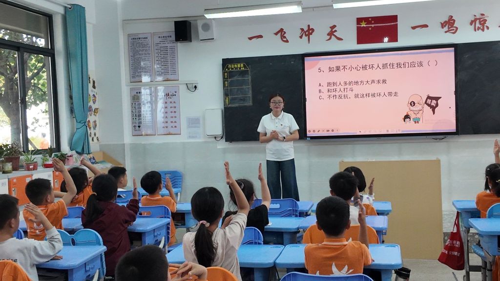 本次活动以“党建+专业”为特色,针对一年级学生特点,精心设计了三大互动环节。在普法讲解环节,主讲人运用生动有趣的动画视频,深入浅出地讲解《中华人民共和国未成年人保护法》核心内容;情景模拟环节采用“角色扮演”方式,由志愿者模拟各类诱骗场景,现场检验和提升孩子们的自我保护能力;知识竞答环节则通过趣味问答巩固学习成效,孩子们踊跃举手、积极互动,现场气氛热烈。活动现场,志愿者们还为表现优异的小朋友准备了学习用品等奖励,进一步激发孩子们的参与热情。