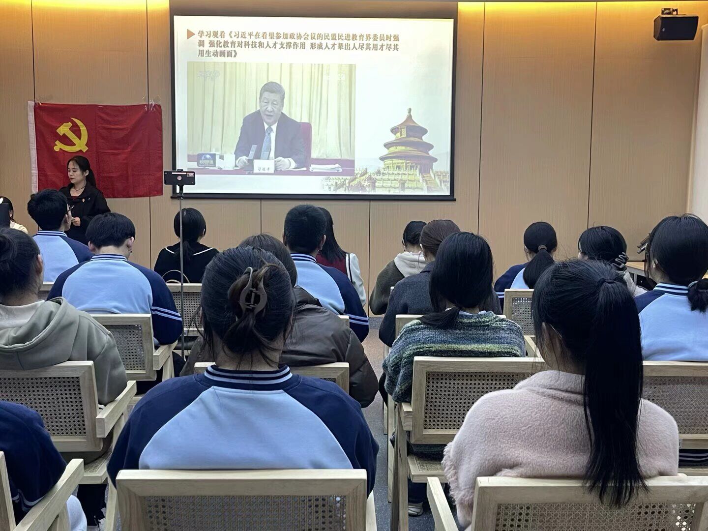会议初始,全体与会人员集中观看了《习近平在看望参加政协会议的民盟民进教育界委员时强调:强化教育对科技和人才的支撑作用,形成人才辈出、人尽其才、才尽其用的生动局面》的视频,深入学习两会精神。通过此次学习,大家深刻领悟了习近平总书记关于教育、科技、人才工作的重要论述,为后续环节奠定了坚实的思想基础,进一步明确了教育在国家发展中的战略地位以及党员在推动教育进步中肩负的责任与使命。