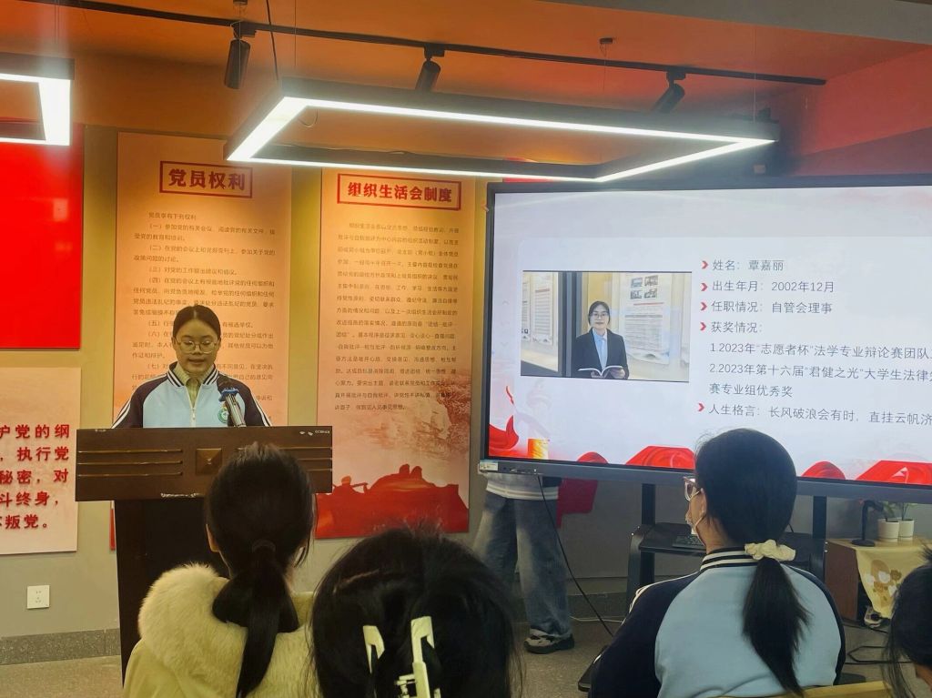 大会最后,党支部书记总结发言。她指出,发展党员工作是党的组织生活的重要组成部分,直接关系到党的事业能否薪火相传、蓬勃发展。同时,她对全体党员寄予厚望,并提出明确要求:一是要以党员的高标准严于律己,从思想深处和实际行动中不断自我提升,以优秀老党员为标杆,在各自岗位上砥砺前行;二是要树立鲜明的党员形象,充分发挥党员的先锋模范作用,时刻铭记党员身份,不与普通群众相混淆;三是要坚决避免“两面人”现象,始终保持党员的积极性与先进性,向周围同学展示出党员应有的蓬勃朝气与正能量。