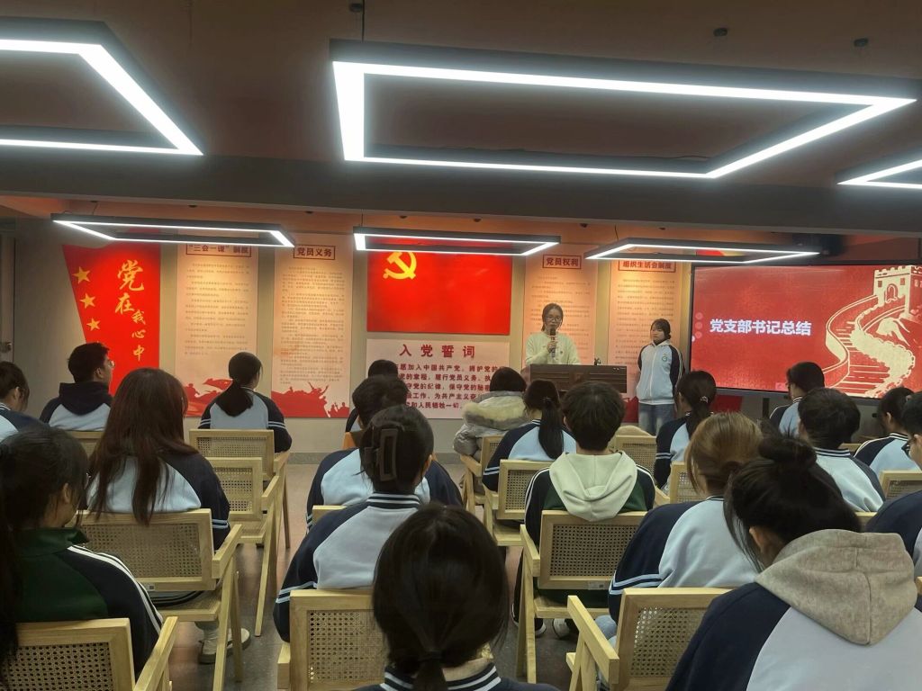 大会最后,党支部书记总结讲话。她首先对新接收预备党员表示祝贺,并提出三点希望和要求:一是作为预备党员,应时刻明确自己的人生方向,无论身处校园还是踏入社会,都要在工作、学习和生活中勇于担当、率先垂范;二是要严守党的纪律,维护党的团结统一,做到政治坚定、规矩严明、纪律严明,引领身边同学共同进步,展现共产党人的责任与风采;三是积极践行入党时的庄严承诺,不仅要在组织上成为党的一员,更要在思想上、行动上与党保持高度一致,以习近平新时代中国特色社会主义思想为指引,以党章为行动准则,树立正确的世界观、人生观、价值观,努力成为一名优秀的共产党员。