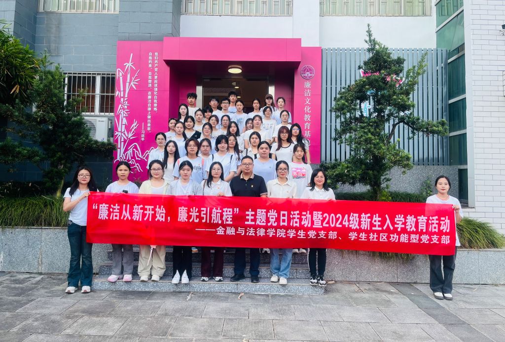为深入推进廉洁文化建设,增强青年学子的廉洁自律意识,11月15日,金融与法律学院学生党支部在广西师范大学廉洁文化教育基地开展“廉洁从新开始,廉光引航程”主题党日活动暨2024级新生入学教育活动。学生社区功能型党支部书记、学生党支部书记、两个支部的党员、积极分子代表及国际经济与贸易专业2024级新生代表参加活动。