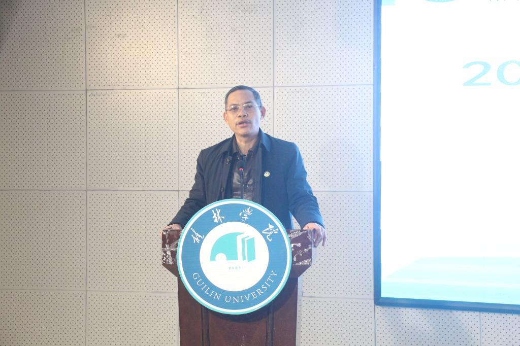 杨树喆在讲话中首先代表学校行政和党委向受表彰的先进集体、先进个人和达标专业表示热烈祝贺,对关心支持毕业生就业工作、为毕业生就业工作付出辛劳的广大教职工表示衷心感谢。他指出,2021年学校将促进毕业生就业工作纳入党史学习教育“我为群众办实事”清单,聚力攻坚,抓早抓实,在各二级学院及相关部门的共同努力下,圆满完成了年度毕业生就业工作任务并取得了显著成效,毕业生去向落实率连续保持在90%以上,农村低收入家庭毕业生毕业去向落实率超过95%,学校第五次获得全区就业工作突出单位荣誉称号。他表示,2022年高校毕业生就业形势依然严峻,表现出“一增一减”“一多一少”“一热一冷”三个突出特点,为此,要着力从以下三个方面抓好做实2022届毕业生就业工作:一是提高政治站位,增强做好毕业生就业工作的责任感、使命感;二是加强形势研判,切实把握好毕业生就业面临的新形势新挑战;三是要抓住关键环节,全力促进毕业生更加充分高质量就业。他最后强调,2022年是我国的政治大年,做好毕业生就业工作,稳定就业大局尤为重要。希望全校上下立即行动起来,切实增强责任感和使命感,担当实干、综合施策、狠抓落实,为建设新时代中国特色社会主义壮美广西提供强有力的人才支撑,以优异的成绩迎接党的二十大胜利召开!