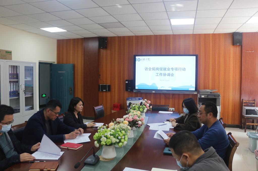 为做好我校访企拓岗促就业专项行动工作,3月28日下午,我校召开访企拓岗促就业专项行动工作协调会。学生事务部、教学科研处、合作发展处等部门领导和有关人员参加了会议。会议由学生事务部部长蒋远宏主持。