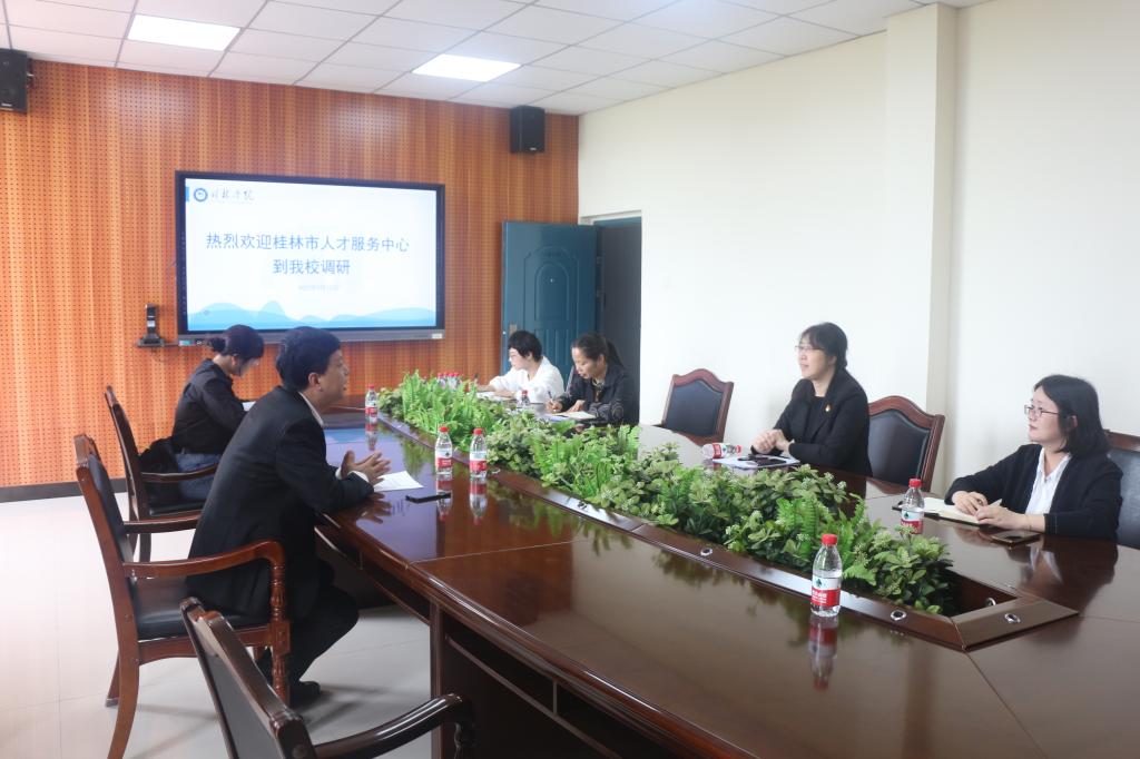 5月13日下午,桂林市人才服务中心唐伟副主任一行到我校走访调研。校党委负责人唐文红,学校人力资源部负责人、就业创业指导中心全体人员参加会议。